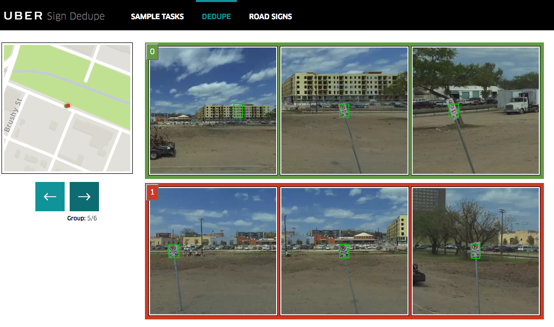 Sign dedupe, a triaging tool, enable operators to view a series of images and identify them as signs. Placement on a roadmap could be adjusted. Dashboard to manage tasks, progress, and outcomes related to jobs for auto-generation of road maps from GPS traces.